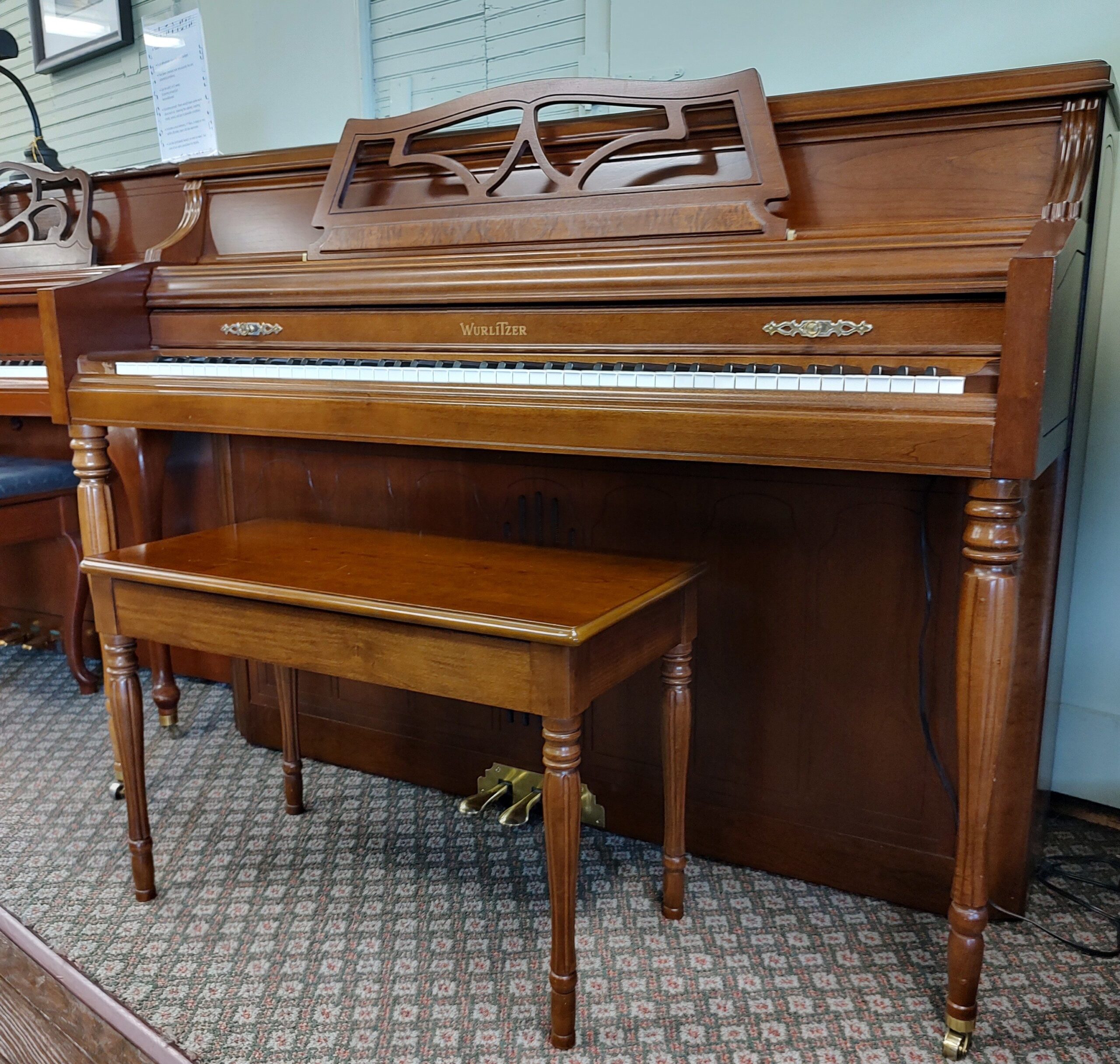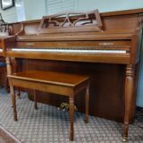 This reconditioned Wurlitzer deluxe console piano was built in 1983. It has a cherry finish, and it comes with a matching bench. Delivery is included within 75 miles of Kramer’s Piano Shop. Upon purchase, you will receive 1 FREE tuning in home within 30 days of purchase. There is a 5 year warranty on this product.