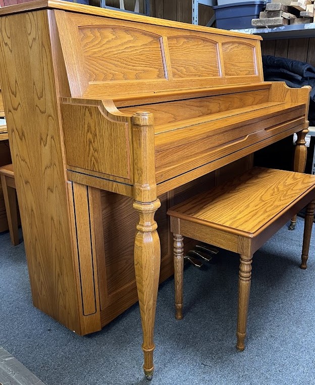 This reconditioned Young Chang studio piano was built in 1988. It has an oak cabinet, and it comes with a matching bench. Delivery is included within 75 miles of Kramer’s Piano Shop. Upon purchase, you will receive 1 FREE tuning in home within 30 days of purchase. There is a 5 year warranty on this product.